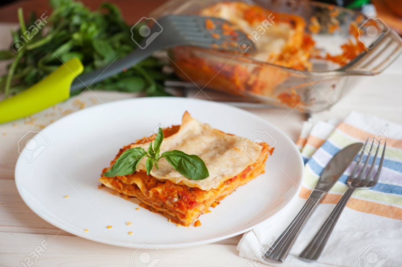 Healthy Vegetarian Lasagna Fresh Italian Recipe With Basil Leaves