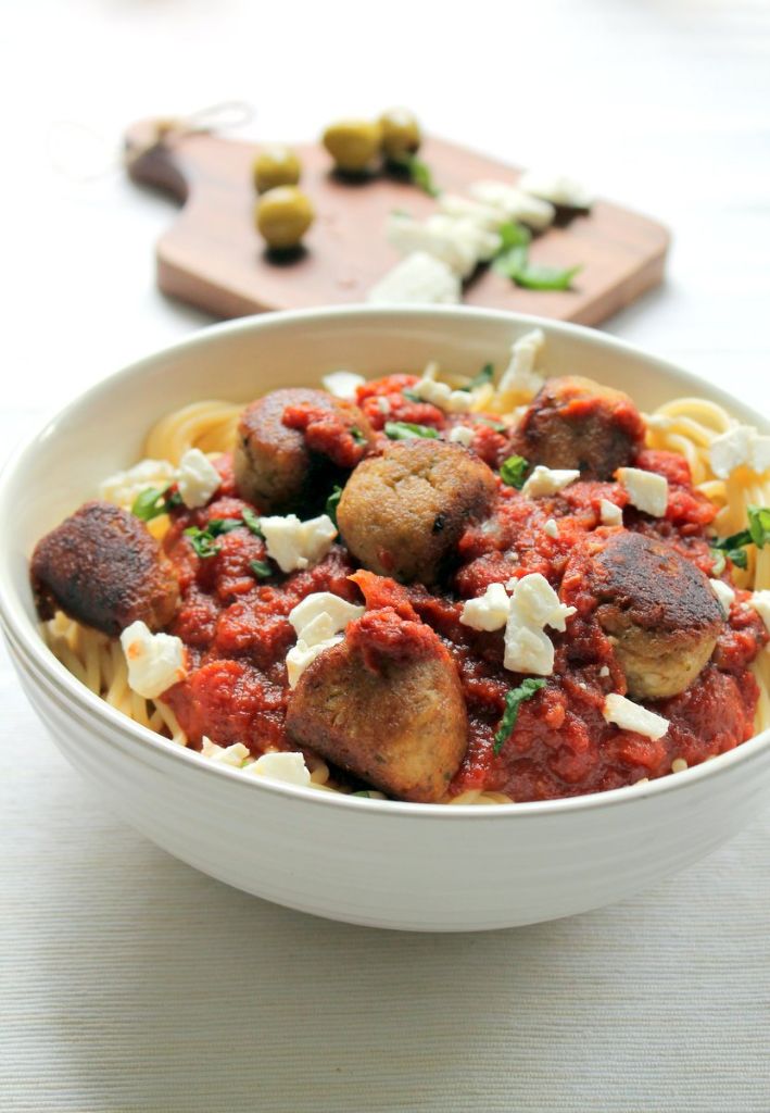 Spaghetti With Tomatoes Black Olives Garlic And Feta Cheese